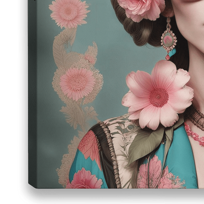Ein digitales Kunstwerk von einer Frau mit Blumen im Haar und Sonnenbrille, erstellt mit Ai.