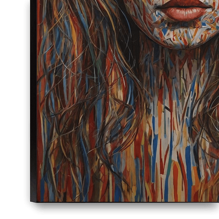 Bestelle dieses Porträt Bunte Dame abstrakt von Art & Soul Creations als Reproduktion auf Leinwand, Alu-Dibond, als Poster, Fototapete oder Acrylglasbild.
