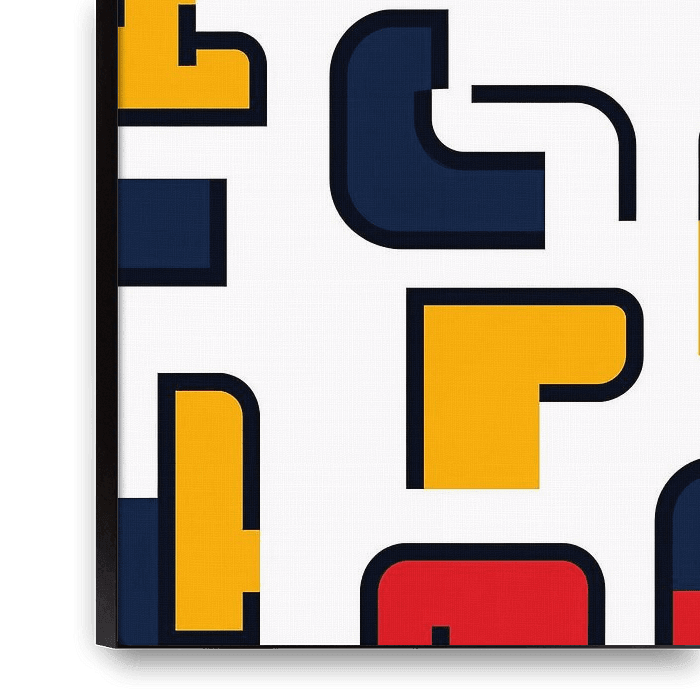 Dieses moderne und farbenfrohe Design kombiniert geometrische Formen mit einem dynamischen Einsatz von Farben: Gelb, Rot, Blau und Schwarz kontrastieren vor einem weißen Hintergrund. Die klaren Linien und die erkennbaren pythonartigen Figuren machen es zu einem perfekten visuellen Statement für jeden Raum, insbesondere für ein Büro oder…