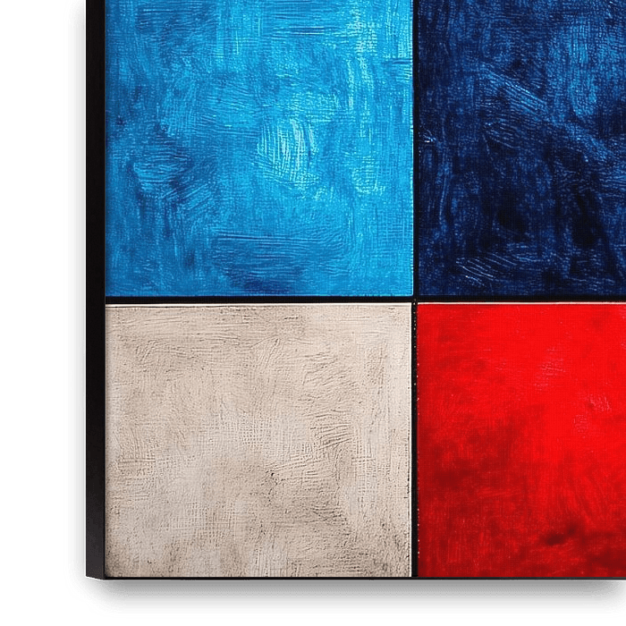 Ein farbenfrohes und auffälliges abstraktes Design mit einer verspielten Mischung aus Primärfarben und geometrischen Formen. Perfekt für eine moderne Einrichtung und bringt eine lebendige und kreative Atmosphäre in jeden Raum. Das Design verbindet Schlichtheit mit Dynamik und bietet einen einzigartigen künstlerischen Look, der sowohl…
