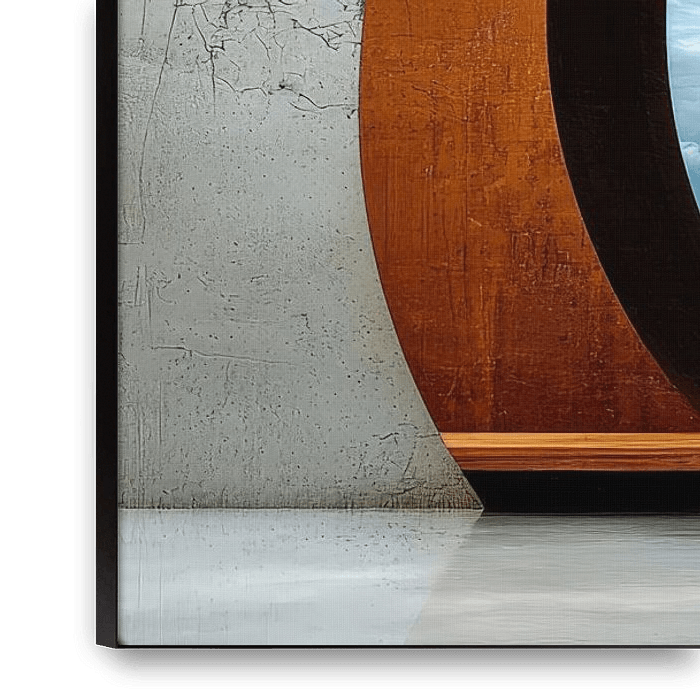 Dieses Bild fängt eine surreale Szenerie ein, in der geometrische Formen und natürliche Elemente auf faszinierende Weise harmonieren. Im Vordergrund steht ein massiver, halbkreisförmiger Bogen aus rostigem Metall, der einen faszinierenden Kontrast zur glatten Oberfläche des Wassers bildet. Der Bogen wirkt wie ein Fenster in eine andere…