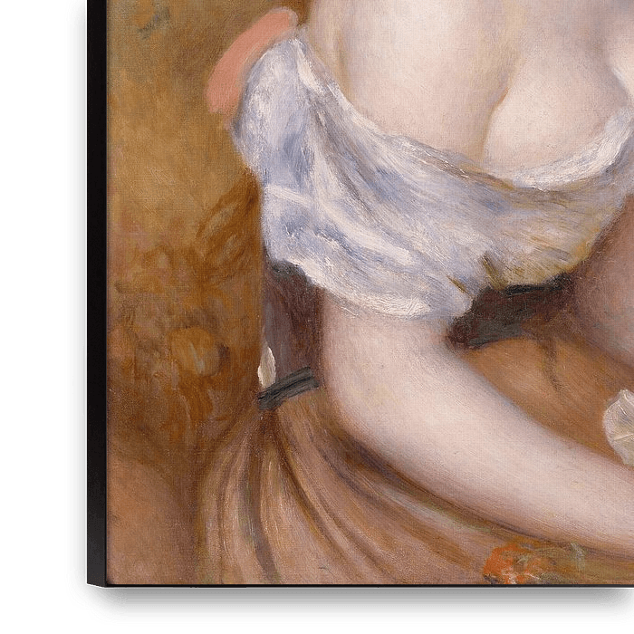 Ich habe wieder aufgenommen, nie im Stich lassen zu, meinen alten Stil, weich und leicht von Touch ‚, kündigte Renoir an seine Händler Durand-Ruel in 1888. Dieses Bild machte im folgenden Jahr, ein Beispiel für die Vorliebe des Künstlers für ebenso sanft und lyrisch Fächer. Podien und andere Wildblumen verleihen eine Notiz aus rustikalen Charme des süßen Gesicht Modell. Solche Feiern der Jugend und Schönheit bewiesen mit Kundschaft Renoirs sehr erfolgreich zu sein.