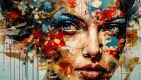 Dieses Bild erweckt durch seine lebendige, dynamische Farbgestaltung einen unmittelbaren Ausdruck von innerer Stärke und emotionaler Tiefe. Der Gesichtsausdruck der dargestellten Figur, insbesondere die Augen, strahlen Intensität und Nachdenklichkeit aus, während die Umgebung in einem Wirbel aus Farben und Formen explodiert. Blau-, Rot-…