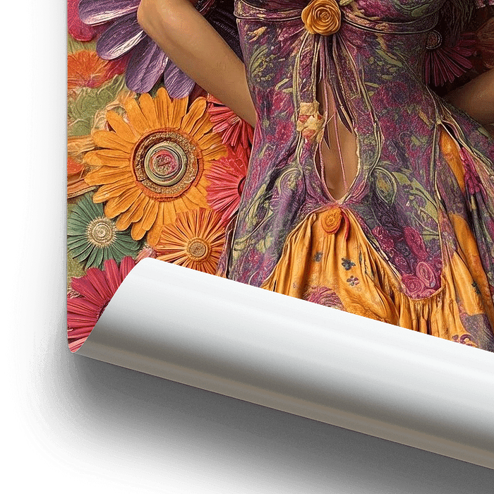 Bestelle dieses Blumen-Wandbild Flowerpower Generation Frau mit Blumen von Egon Zitter als Reproduktion auf Leinwand, Alu-Dibond, als Poster, Fototapete oder Acrylglasbild.