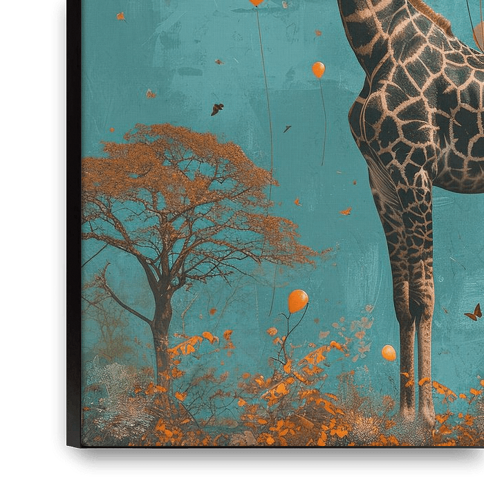 "Joyful Flight" ist ein verspieltes Bild einer Giraffe, die von schwebenden Luftballons umgeben ist und einen Hauch von Feierlichkeit und Leichtigkeit ausstrahlt. Die warmen Herbsttöne und die leichtfüßigen Luftballons bilden einen Kontrast zu der großen und stattlichen Statur der Giraffe. Dieses Kunstwerk bringt eine…