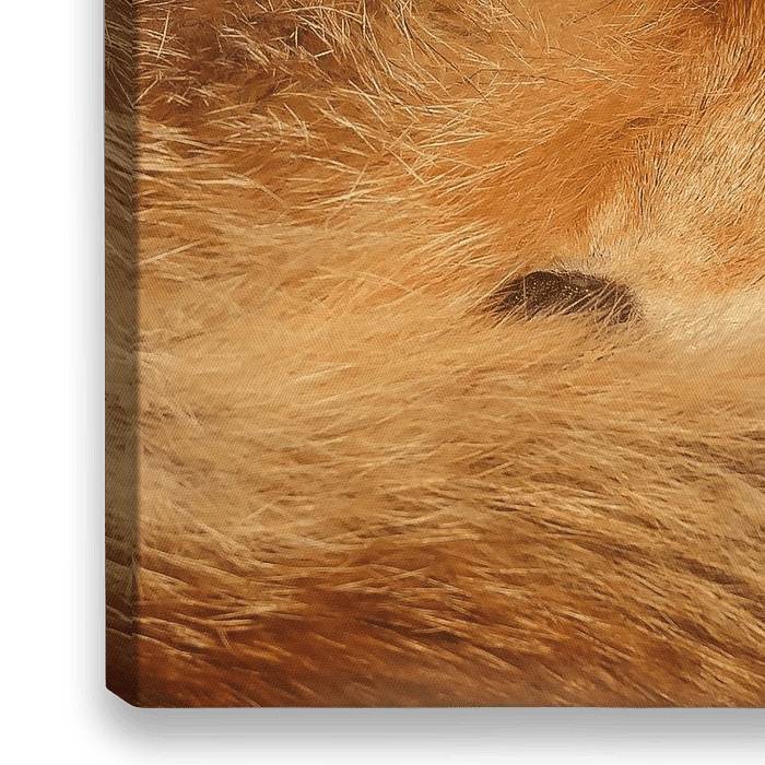 Das Porträt eines schlafenden Fuchses. Der Schwanz kräuselt den Fuchs vor seiner Schnauze, um zusätzliche Wärme zu erhalten.