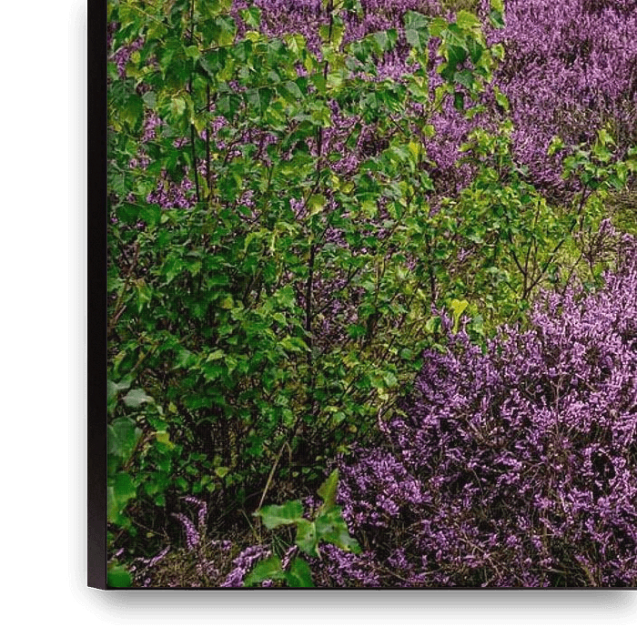 Bestelle dieses Landschafts-Wandbild Fußweg über blühende Heideflächen, Posbank, Niederlande von Rietje Bulthuis als Reproduktion auf Leinwand, Alu-Dibond, als Poster, Fototapete oder Acrylglasbild.