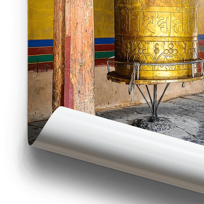 Bestelle das Foto Gebetsmühle im Kloster, Tibet von Rietje Bulthuis als Reproduktion auf Leinwand, Alu-Dibond, als Poster, Fototapete oder Acrylglasbild.