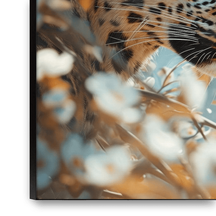 Whisper of the Wild" ist eine bezaubernde Darstellung eines Leoparden, der sich in der hellen Blütenpracht des Frühlings versteckt. Der Fokus auf das kräftige Profil des Leoparden, das mit den zarten Blumen verwoben ist, schafft einen Kontrast zwischen der wilden Kraft des Tieres und der zerbrechlichen Schönheit der Natur. Das weiche…