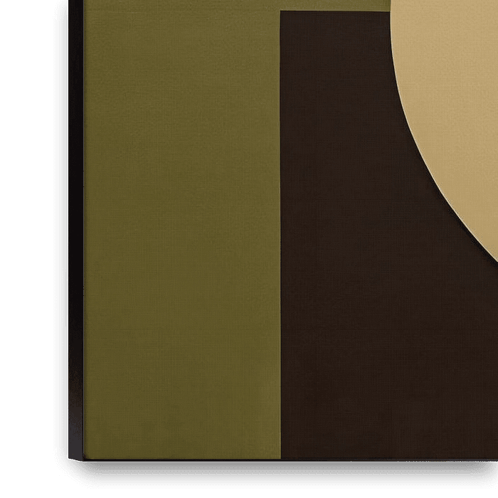 Dieses einzigartige Design zeigt eine minimalistische Komposition mit geometrischen Formen in warmen Erdtönen. Ein großer Kreis bildet das Herzstück der Komposition, umgeben von subtilen Bereichen in Schwarz, Braun und Beige, die sich harmonisch zu einem abstrakten und faszinierenden Ganzen zusammenfügen. Durch die Verwendung einfacher…