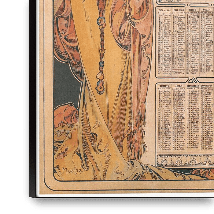 Bestelle diese Malerei Grand Bazar tours Calendar 1902 von Alphonse Mucha von Peter Balan als Reproduktion auf Leinwand, Alu-Dibond, als Poster, Fototapete oder Acrylglasbild.