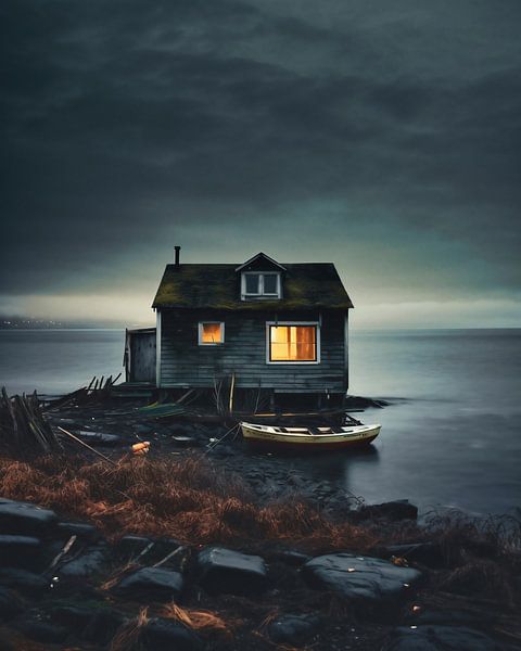 Bestelle dieses Landschafts-Wandbild Haus am Meer von fernlichtsicht als Reproduktion auf Leinwand, Alu-Dibond, als Poster, Fototapete oder Acrylglasbild.