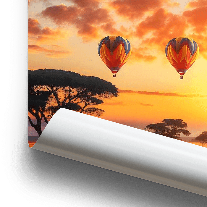 Bestelle dieses Landschafts-Wandbild Heißluftballons in Afrika V4 von drdigitaldesign als Reproduktion auf Leinwand, Alu-Dibond, als Poster, Fototapete oder Acrylglasbild.