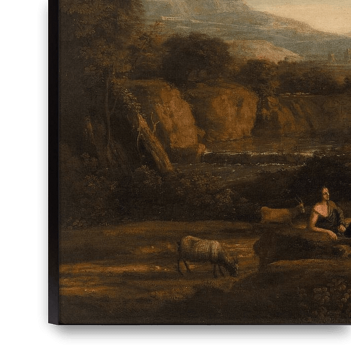 Bestelle Hirtenlandschaft, Claude Lorrain als Reproduktion auf Leinwand, Alu-Dibond, als Poster, Fototapete oder Acrylglasbild.