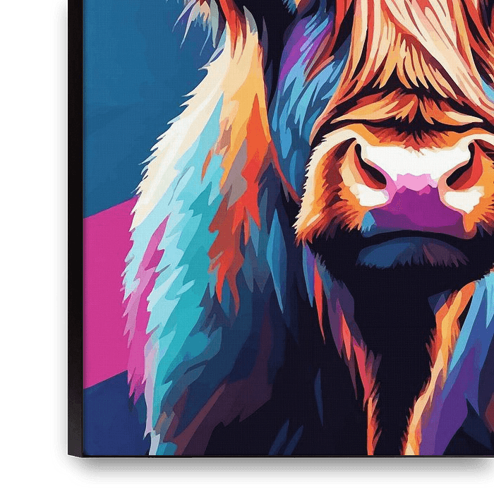 Bestelle dieses Schottische Hochlandrind Wandbild Hochlandkuh Pop Art 5 von MIROKKU als Reproduktion auf Leinwand, Alu-Dibond, als Poster, Fototapete oder Acrylglasbild.
