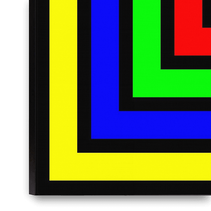 Ihre gewählte Kunst auf Leinwand, gespannt in einem Aluminiumrahmen. Schnell und einfach austauschbar für eine frische Ausstrahlung und ganz nach Ihren Wünschen.
