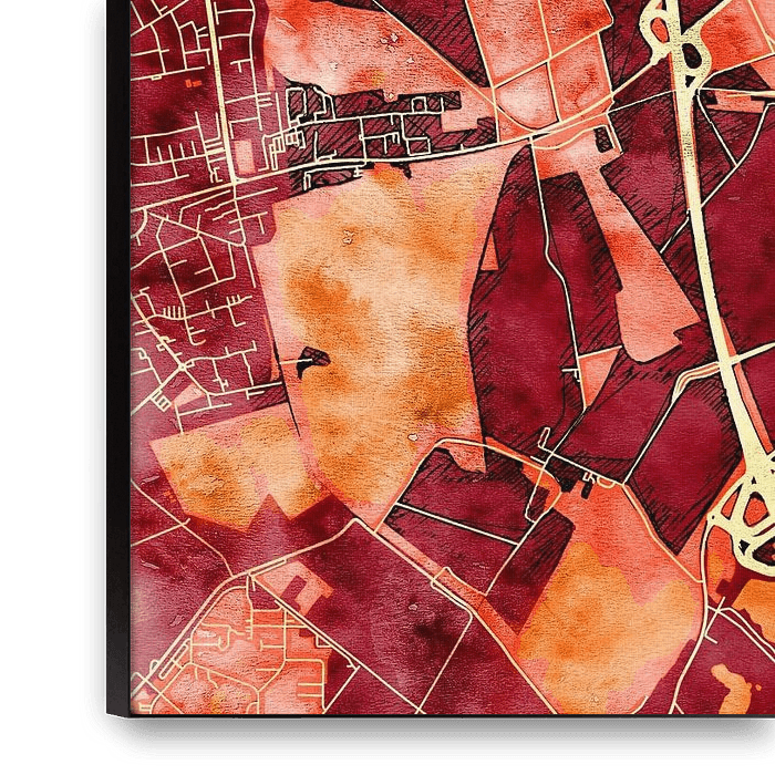 Bestelle dieses abstrakte Wandbild Karte von Langenfeld (Rheinland) im stil 'Amber Autumn' von Maporia als Reproduktion auf Leinwand, Alu-Dibond, als Poster, Fototapete oder Acrylglasbild.