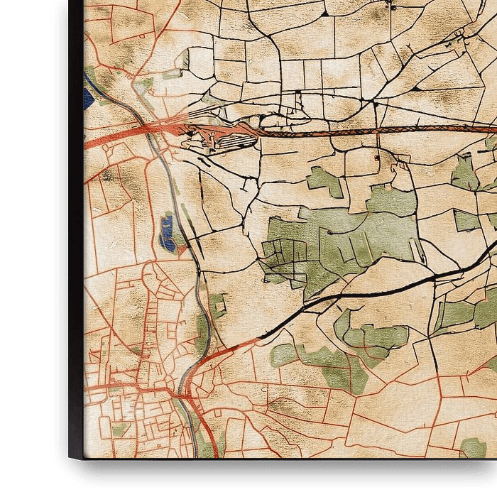 Diese Karte von Sankt Pölten hat unseren maßgeschneiderten Stil "Serene Summer". Die Landschaft hat einen warmen, sonnenverwöhnten Erdton, während sich die roten Straßen durch die blühende Vegetation schlängeln. Diese sommerliche Farbpalette ist inspiriert von der Art Jugendstil-Bewegung zu Beginn des letzten Jahrhunderts.…