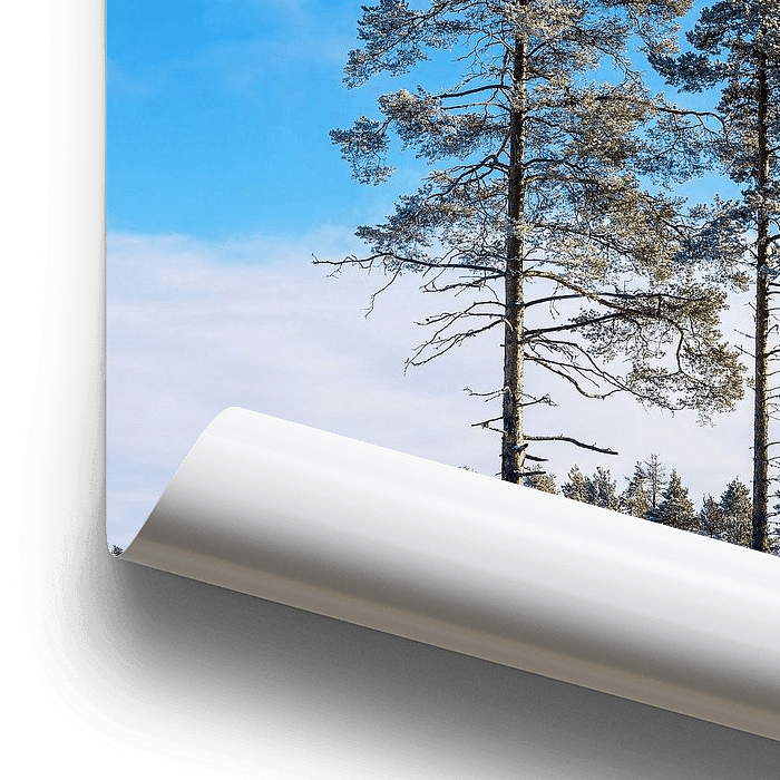 Bestelle dieses Landschafts-Wandbild Landschaft mit Schnee im Winter bei Kuusamo, Finnland von Rico Ködder als Reproduktion auf Leinwand, Alu-Dibond, als Poster, Fototapete oder Acrylglasbild.