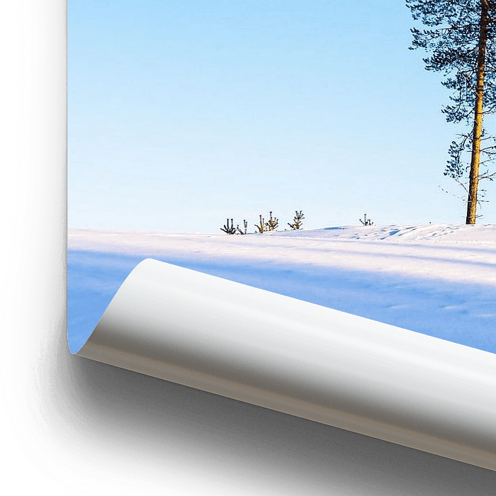 Bestelle dieses Landschafts-Wandbild Landschaft mit Schnee im Winter bei Kuusamo, Finnland von Rico Ködder als Reproduktion auf Leinwand, Alu-Dibond, als Poster, Fototapete oder Acrylglasbild.