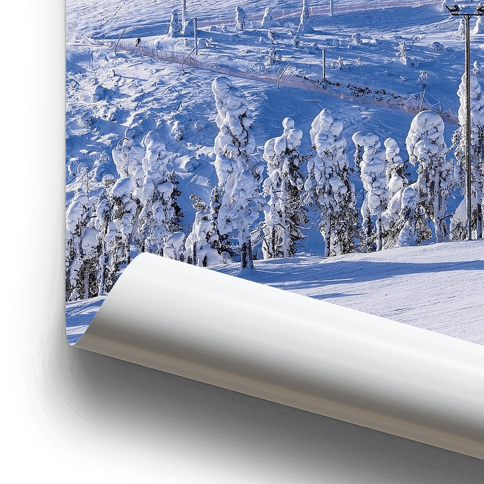 Bestelle dieses Landschafts-Wandbild Landschaft mit Schnee im Winter in Ruka, Finnland von Rico Ködder als Reproduktion auf Leinwand, Alu-Dibond, als Poster, Fototapete oder Acrylglasbild.