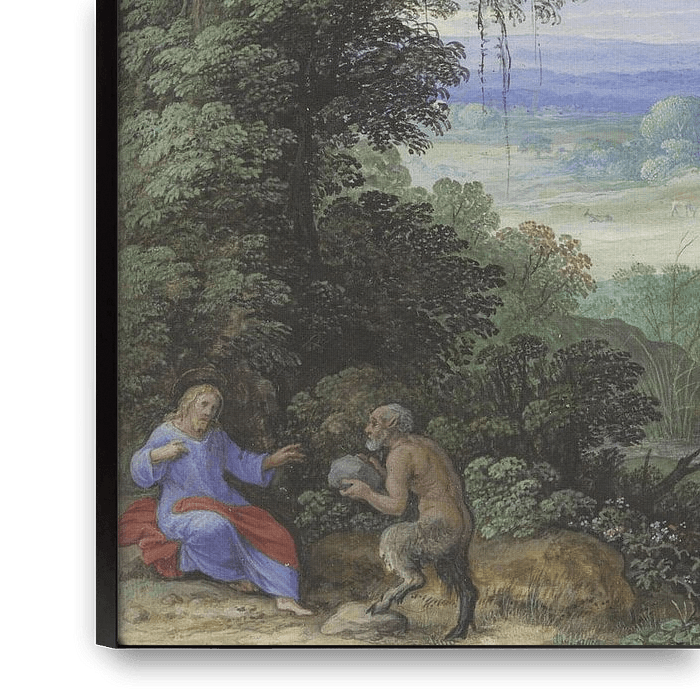 Bestelle Landschaft mit der Versuchung Christi,Paulus Bril als Reproduktion auf Leinwand, Alu-Dibond, als Poster, Fototapete oder Acrylglasbild.