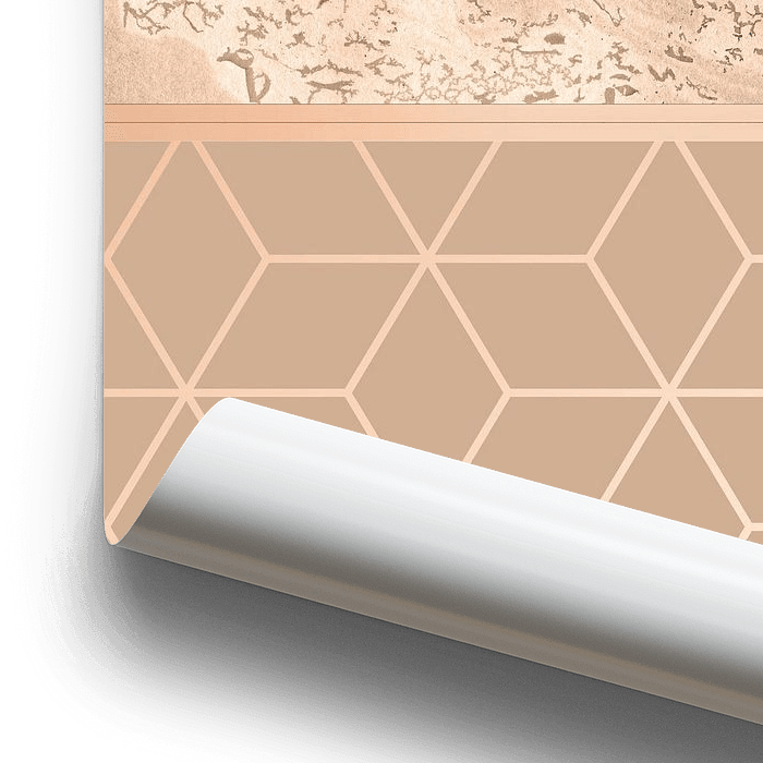 Version 3. Marmorierte, fotorealistische Strukturen in Kombination mit einem eleganten geometrischen Muster (Hexagonale) im zarten RoseGold. Dekoratives und elegantes Motiv.