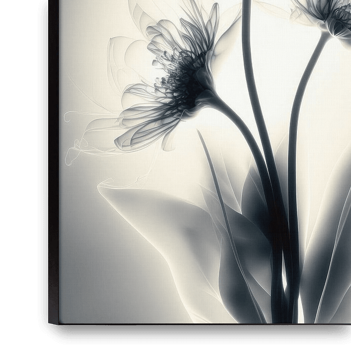Ihre gewählte Kunst auf Leinwand, gespannt in einem Aluminiumrahmen. Schnell und einfach austauschbar für eine frische Ausstrahlung und ganz nach Ihren Wünschen.
