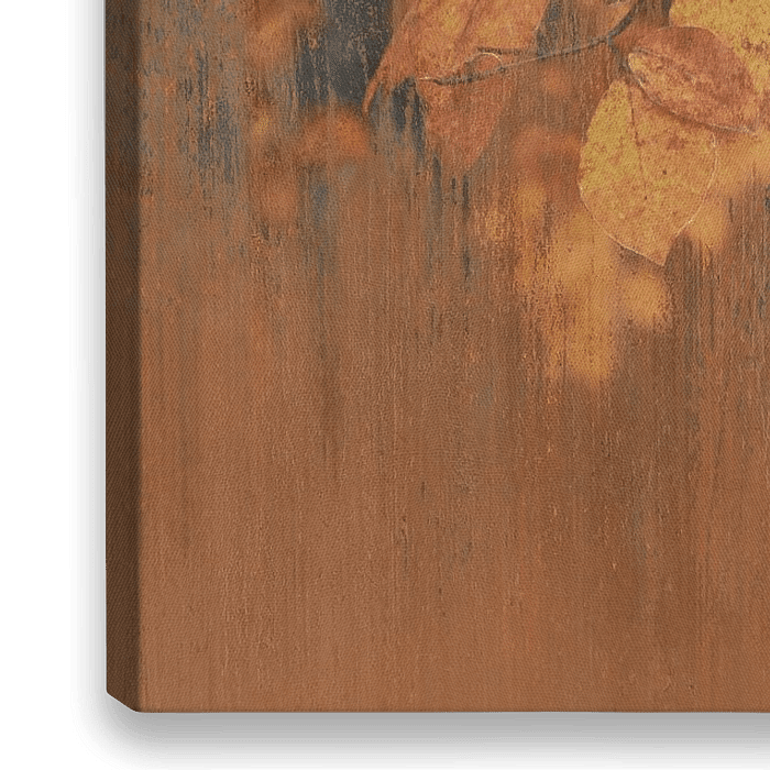 Kunstwerk mit malerischem rostrotbraunem Herbstlaub und Industrieatmosphäre.