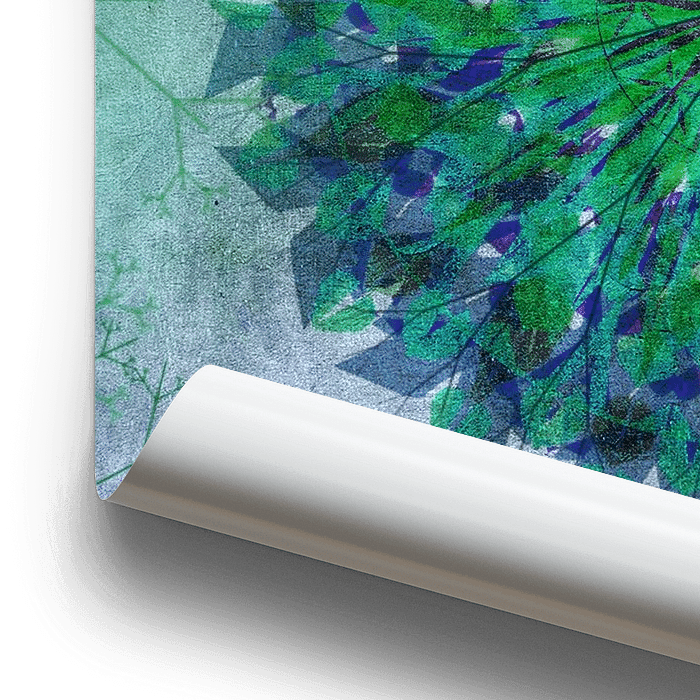 Bestelle dieses Blumen-Wandbild Mandala - Grunge in Grün und Blau von Rietje Bulthuis als Reproduktion auf Leinwand, Alu-Dibond, als Poster, Fototapete oder Acrylglasbild.