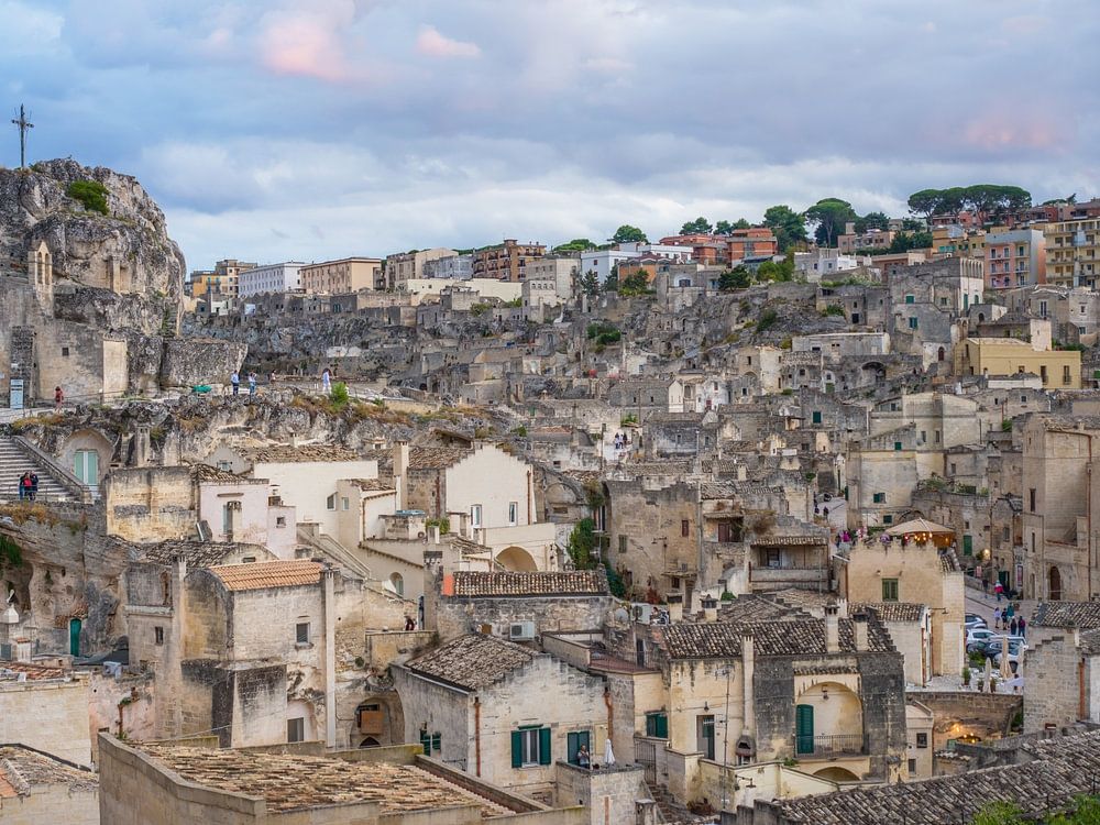 Diese Aufnahme der faszinierenden Höhlenstadt Matera entstand kurz vor dem Sonnenuntergang. Sie zeigt die Chiesa Rupestre di Santa Maria di Idris sowie die Chiesa di San Pietro Caveoso. Die Kirche Santa Maria de Idris befindet sich auf einem Kalksteinfelsen namens Monterrone, im…