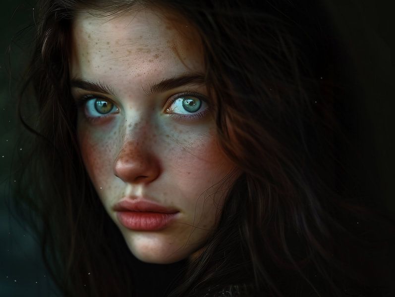 Bestelle dieses Porträt Melancholischer Schleier, verborgene Trauer von fernlichtsicht als Reproduktion auf Leinwand, Alu-Dibond, als Poster, Fototapete oder Acrylglasbild.