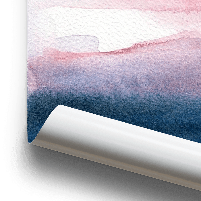 Bestelle dieses Landschafts-Wandbild Minimalistische Aquarell-Meereslandschaft mit rosa und lila Himmel von Dina Dankers als Reproduktion auf Leinwand, Alu-Dibond, als Poster, Fototapete oder Acrylglasbild.