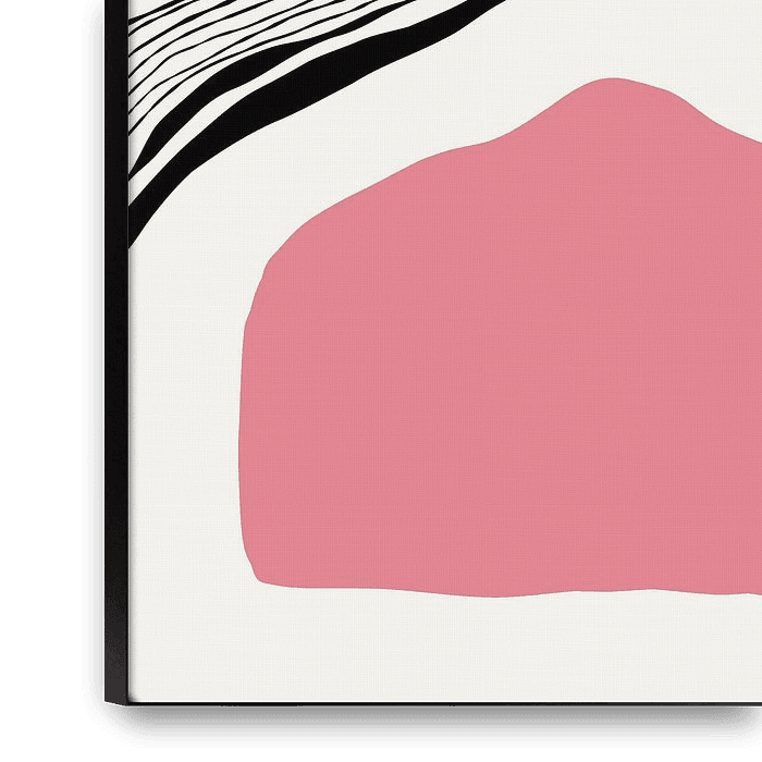 Organische, abstrakte und grafische Formen in Rosa und Schwarz. Der Wohnstil ist einfach und minimalistisch.