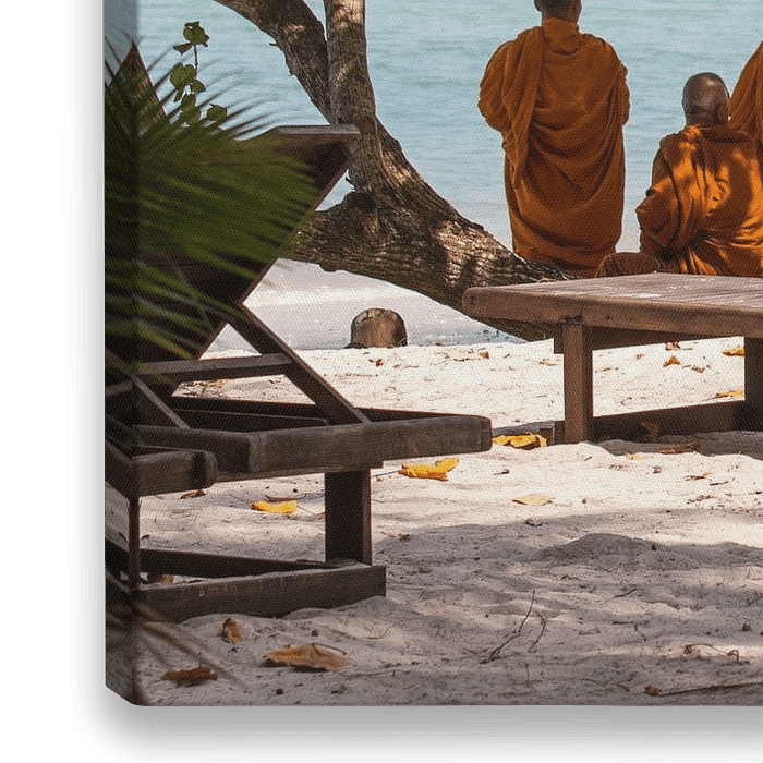 Bestelle das Foto Mönche am Strand von Levent Weber als Reproduktion auf Leinwand, Alu-Dibond, als Poster, Fototapete oder Acrylglasbild.