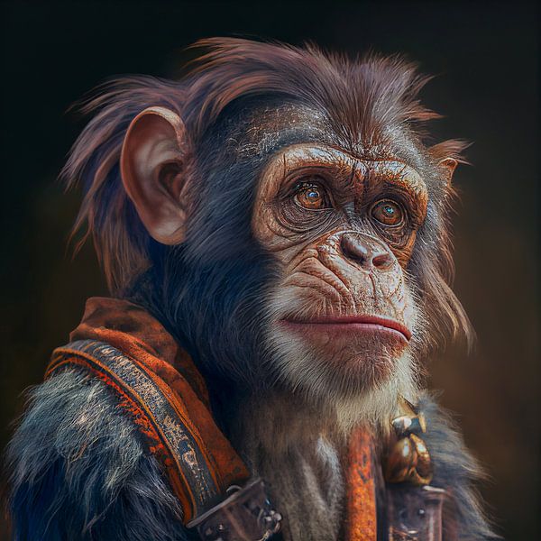 Nahaufnahme eines Schimpansen bereit für den Weltraum Illustration