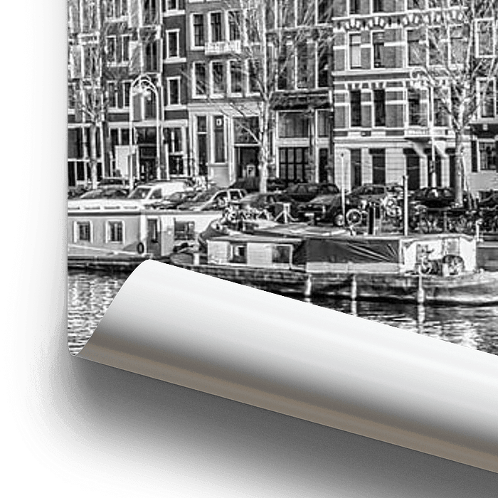 Bestelle das Foto Oude Schans Amsterdam, Niederlande. schwarz und weiß von Rietje Bulthuis als Reproduktion auf Leinwand, Alu-Dibond, als Poster, Fototapete oder Acrylglasbild.