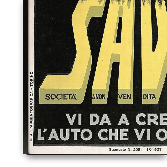 Über „Plinio Codognato - Fiat Sava Vi Da A Credito L’Auto Che Vi Occorre (1927)“ von Peter Balan