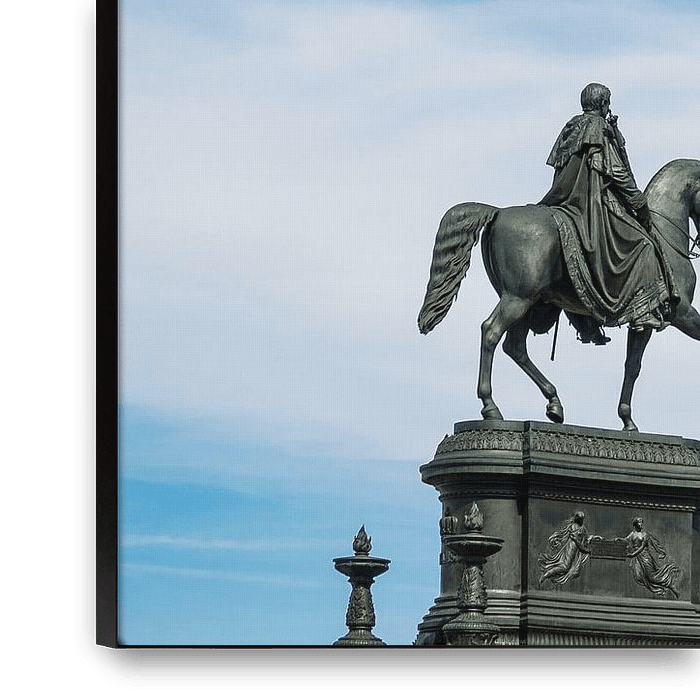 Bestelle das Foto Reiterstandbild und Katholische Hofkirche in Dresden von Rico Ködder als Reproduktion auf Leinwand, Alu-Dibond, als Poster, Fototapete oder Acrylglasbild.