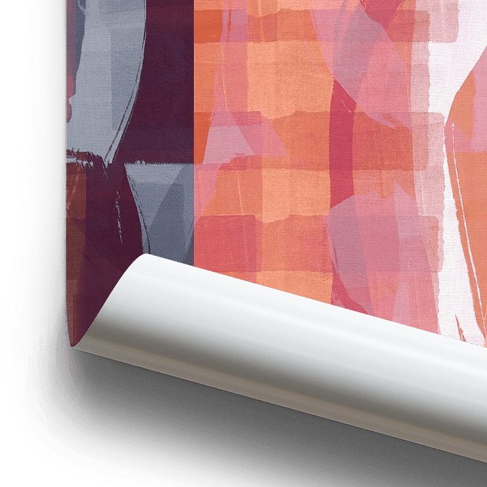 Bestelle dieses abstrakte Wandbild Retro-Muster in Rosa, Orange, Blau und Rot auf Leinen. von Dina Dankers als Reproduktion auf Leinwand, Alu-Dibond, als Poster, Fototapete oder Acrylglasbild.