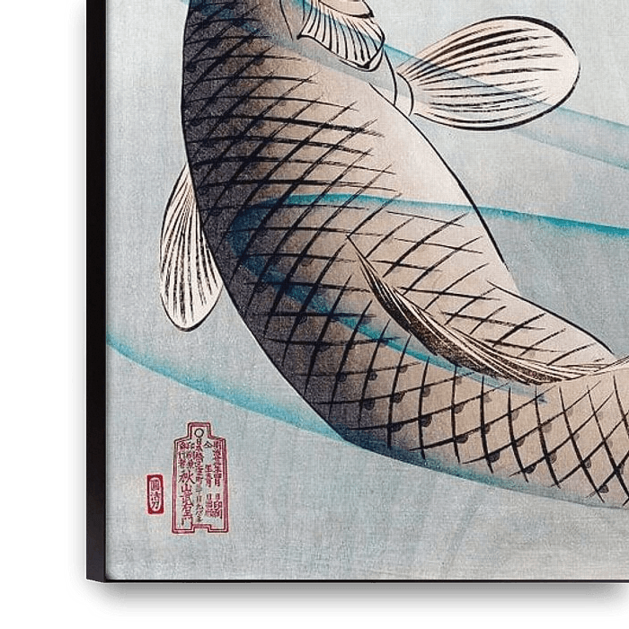 Über „Sechs Karpfen schwimmen unter Glyzinien, Tsukioka Yoshitoshi“