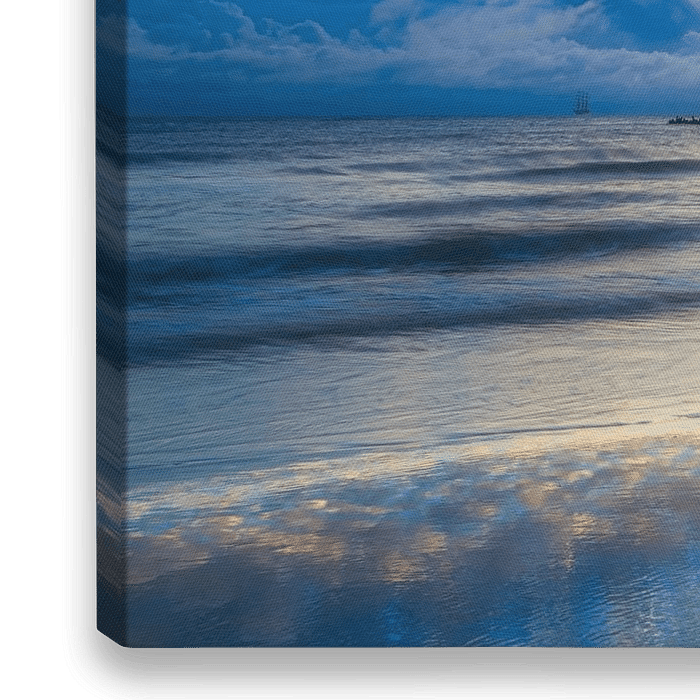 Bestelle dieses Landschafts-Wandbild Seebrücke Heringsdorf zum Sonnenaufgang von Daniela Beyer als Reproduktion auf Leinwand, Alu-Dibond, als Poster, Fototapete oder Acrylglasbild.