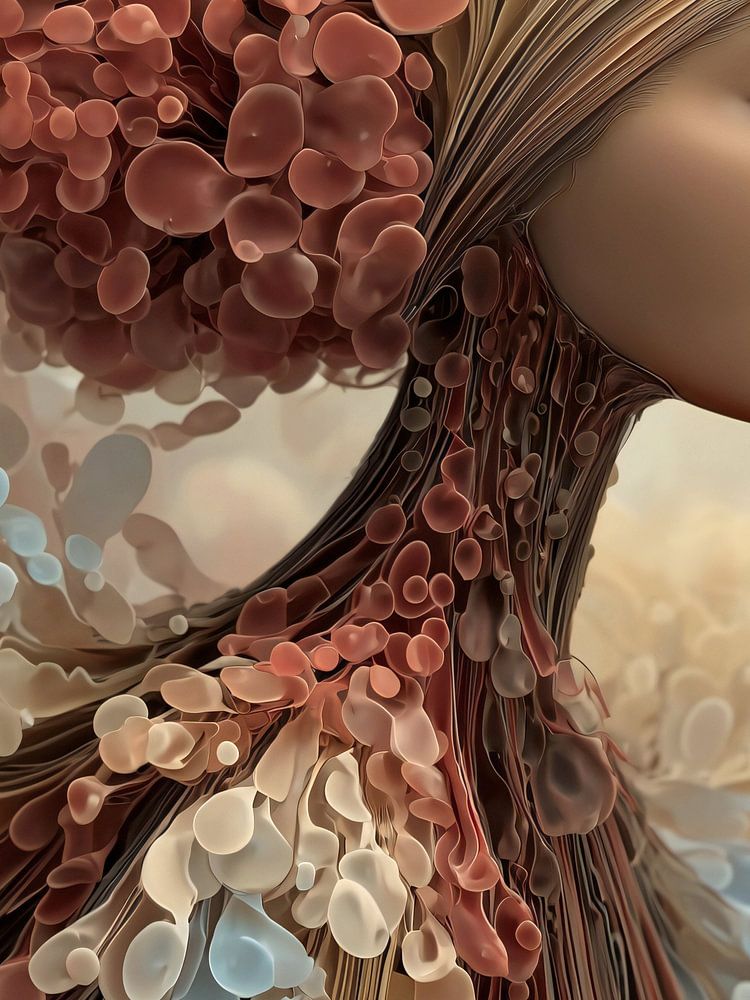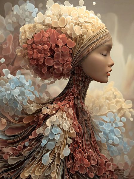 Abstraktes Fantasieporträt einer Frau in weichen Pastell- und Erdtönen.