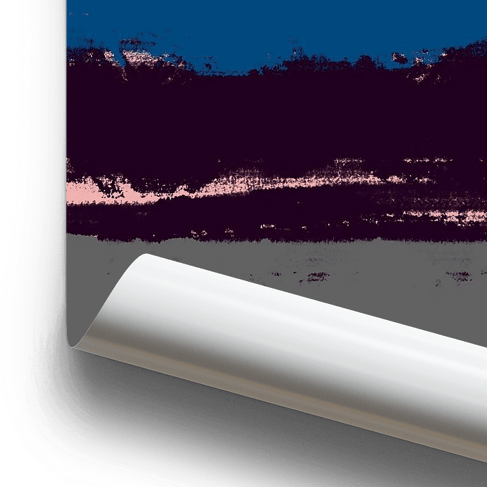 Bestelle dieses Landschafts-Wandbild Sonnenuntergang. Moderne abstrakte bunte Landschaft in blau, grau, braun und rosa. von Dina Dankers als Reproduktion auf Leinwand, Alu-Dibond, als Poster, Fototapete oder Acrylglasbild.