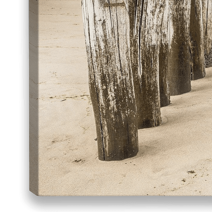 Viel fotografiert, aber nicht umsonst! Die Symmetrie der Pfahlreihe, die Schichten von Strand, Wasser und Luft und die feinen weichen Pastelltöne machen dieses Foto zum ultimativen Strandfoto!