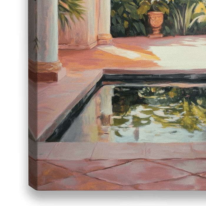 Bestelle diese Malerei Tropischer Innenhof von Poster Art Shop als Reproduktion auf Leinwand, Alu-Dibond, als Poster, Fototapete oder Acrylglasbild.