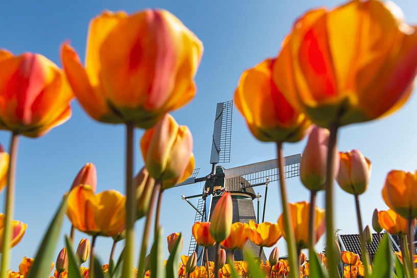 Bestelle dieses Landschafts-Wandbild Tulpen an Windmühle von Frans Lemmens als Reproduktion auf Leinwand, Alu-Dibond, als Poster, Fototapete oder Acrylglasbild.