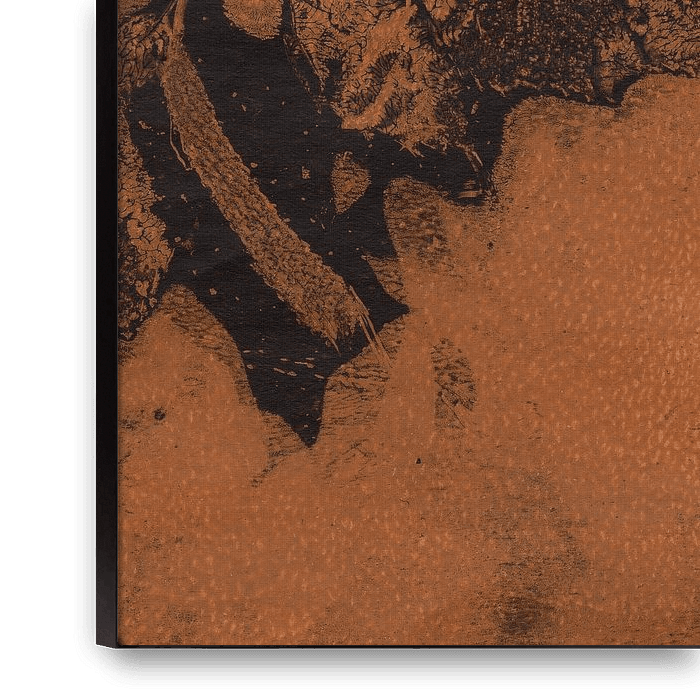Diese Kunstwerkserie ist eine ruhige und erdige Hommage an die raue Schönheit der Natur. Jedes Stück wird mit einer Monotypie-Technik erstellt, die zarte Abdrücke von echten Pflanzen und Blättern einfängt. Kombiniert mit strukturierten Oberflächen in satten Terrakotta-, Dunkelbraun- und Sepiatönen, strahlen diese Drucke Wärme und…