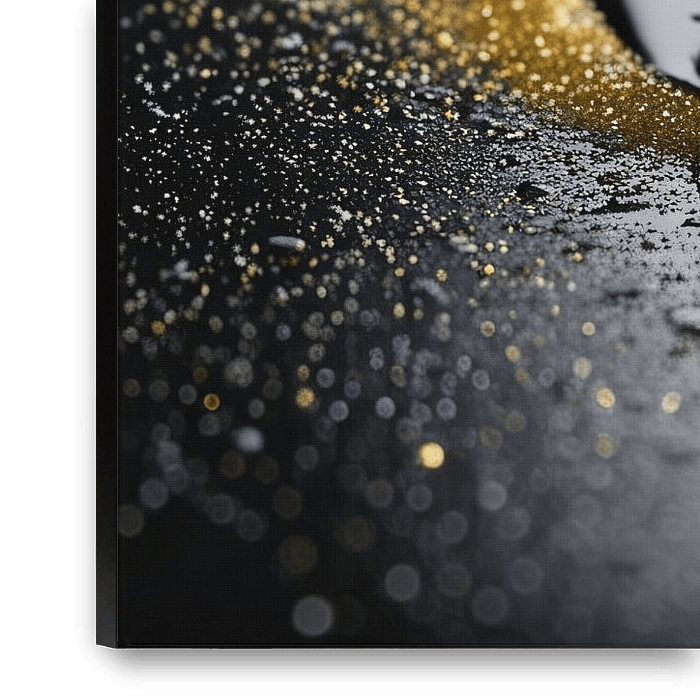 Ein elegantes Design, bei dem eine weiße Schneeflocke anmutig auf einem glänzenden schwarzen Stein ruht. Der subtile goldene Schimmer um den Stein verleiht dem Ganzen einen raffinierten und ruhigen Look. Dieses moderne Kunstwerk strahlt Einfachheit und Gelassenheit aus und eignet sich perfekt, um jedem Raum eine ruhige und stilvolle…