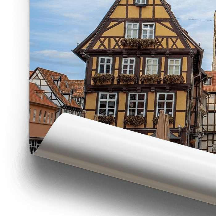 Bestelle das Foto Welterbestadt Quedlinburg - Marktplatz mit Rathaus und Marktkirche St. Benedicti von t.ART als Reproduktion auf Leinwand, Alu-Dibond, als Poster, Fototapete oder Acrylglasbild.